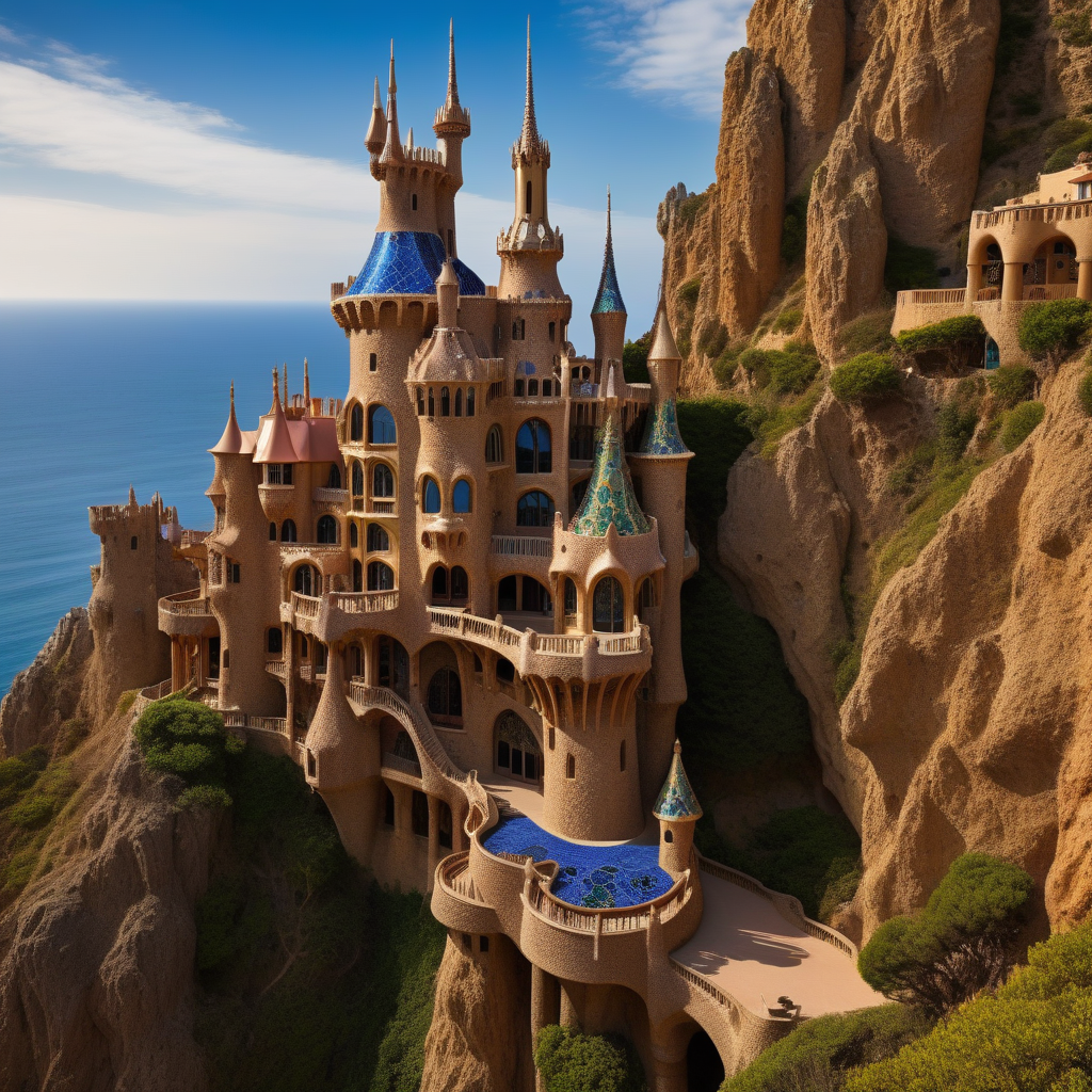 Stable diffusion XL prompt - Coastal castle by Antoni Gaudí