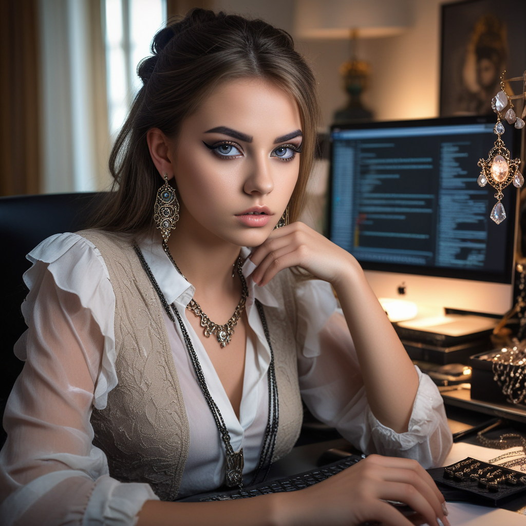 Jewelry. ((perfect shape. detailed soft eyes. Detailed face.))